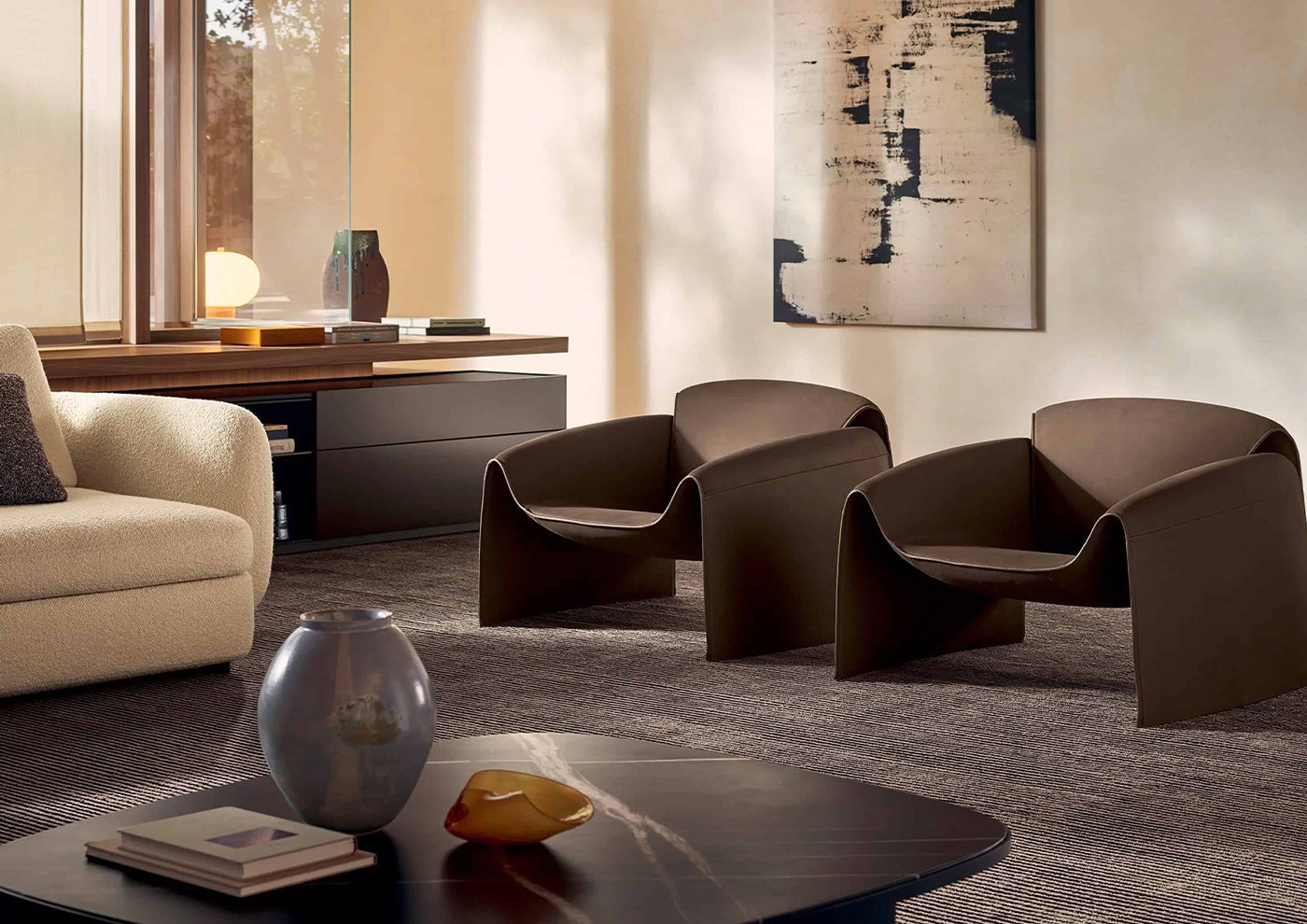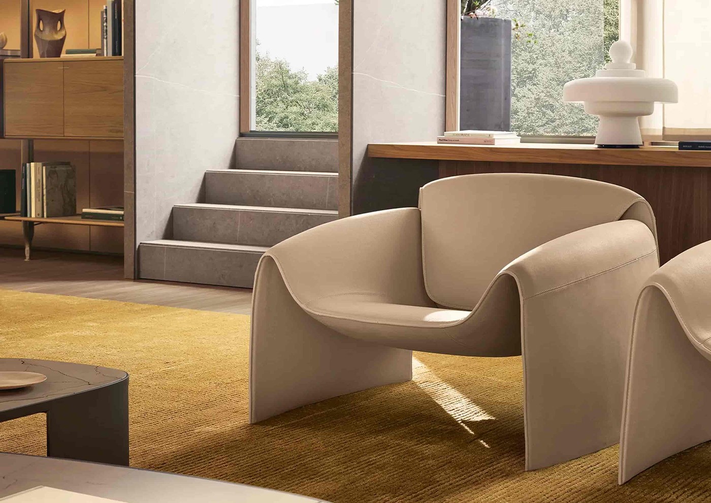 The Le Club armchair reinterprets one of the archetypes of last century design with a contemporary twist. The light and minimalist design of the voluminous leather club chair is given a more contemporary twist. Le Club retains the curved lines and unparalleled comfort of the armchairs from which it draws inspiration, but its dimensions are lighter to lend a more casual and contemporary elegance, echoing the shapes of 1970s design.