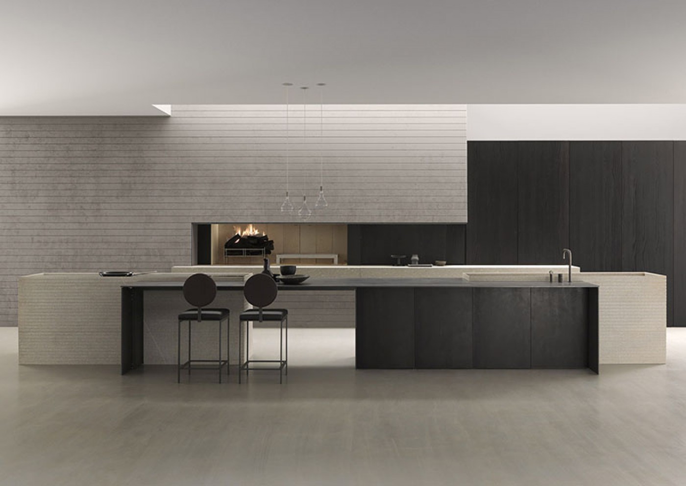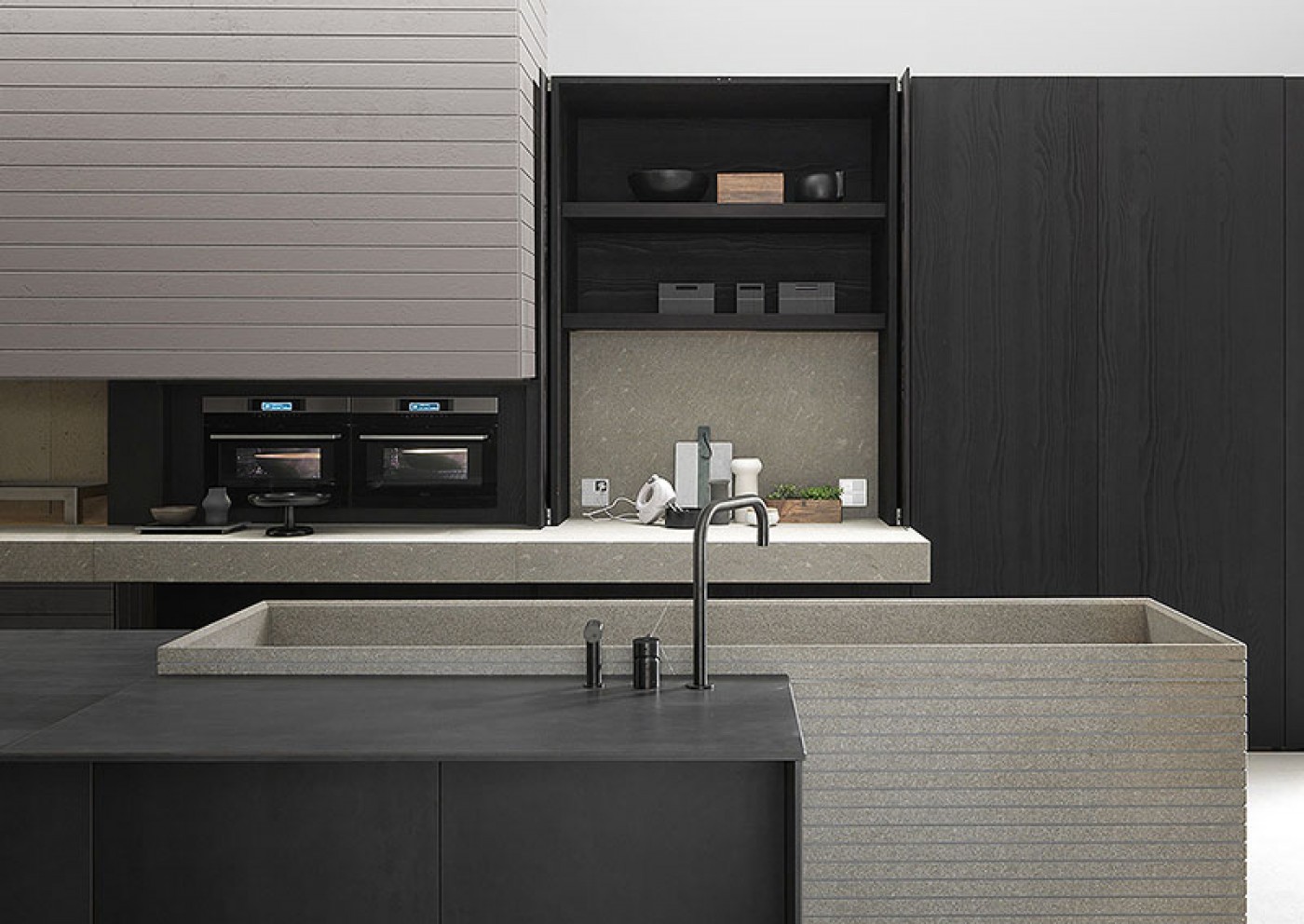 Also present is the Blade model, linear and minimal with the presence of large functional islands in Piasentina stone with ribbed workmanship, combined with a station where you can cook over the coals, the best you can ask for in a kitchen where you can work in complete tranquillity.