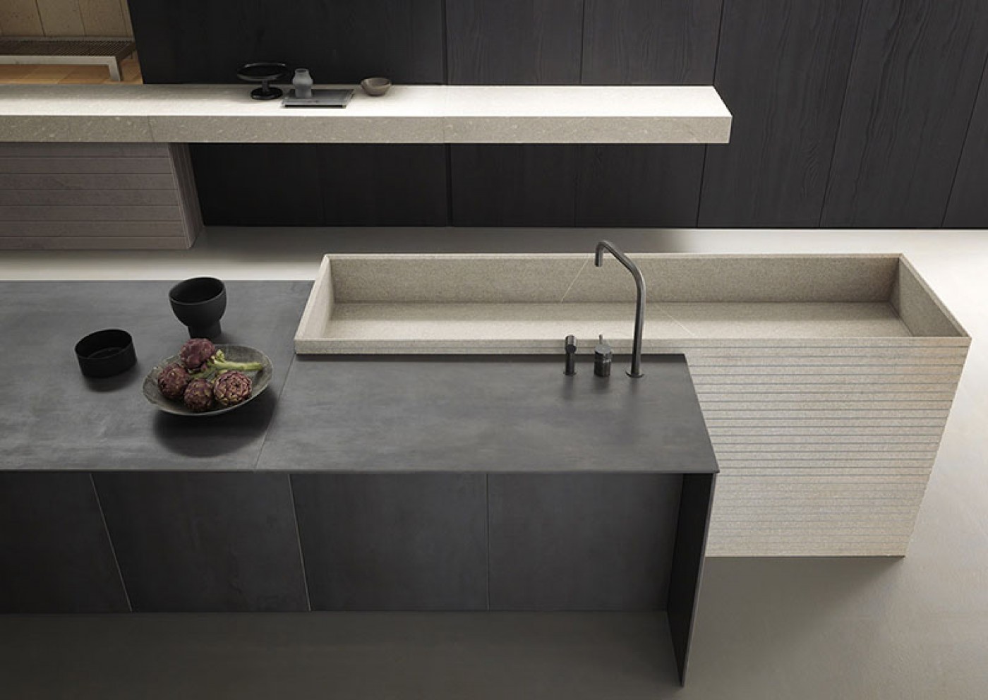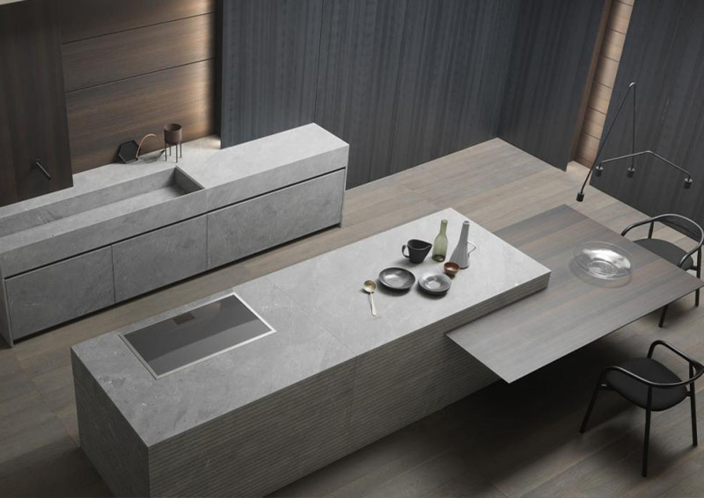 The stone kitchen represents the pinnacle of Modulnova projects. It takes advantage of new technologies managing to transform a notoriously heavy material into a light material that is compatible with the kitchen environment.