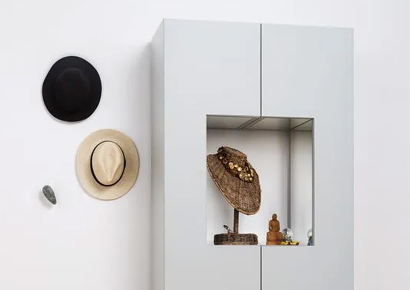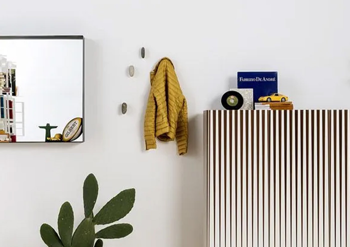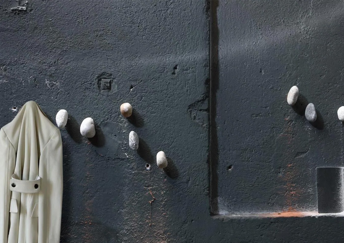 Appendiabiti a forma di sasso, ogni sasso richiede un foro con una profondità minima di 7 cm. Prodotto da non montare su cartongesso.
