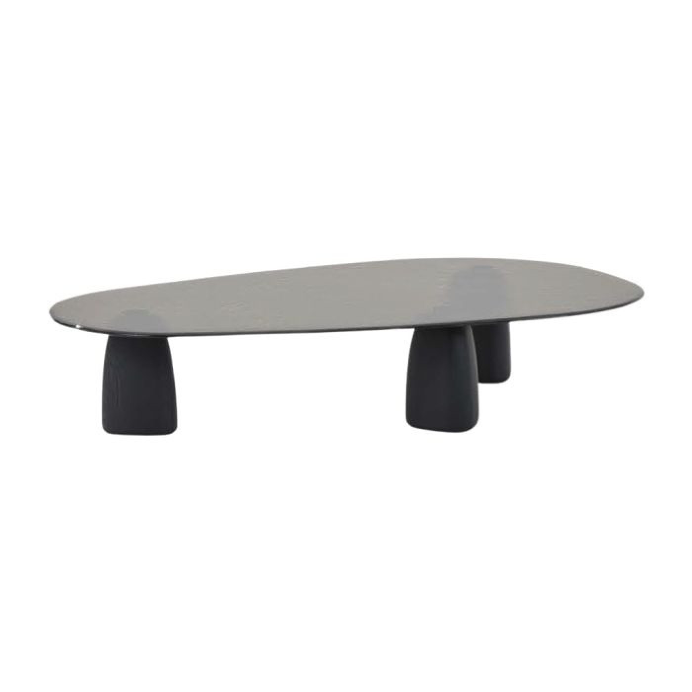 Tavolino Strata tondo diametro 100 x H 34 finitura struttura olmo nero + piano in vetro fusione bronzato 3D51